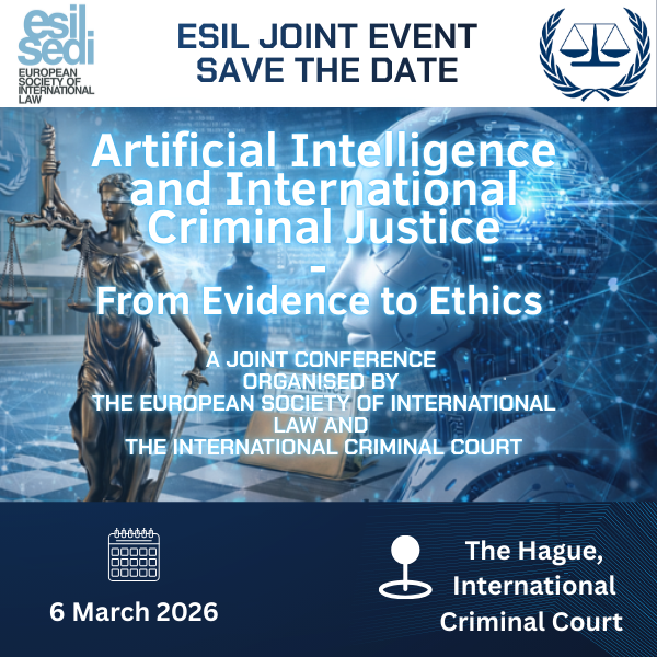 Joint ESIL- ICC Conference on “Artificial Intelligence and International Criminal Justice: From Evidence to Ethics” | 6 March 2026