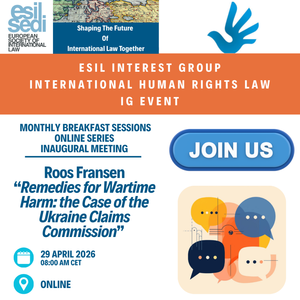 Looking for a low-pressure way to discuss the latest in International Human Rights Law? The ESIL IG on International Human Rights Law is excited to announce a new initiative designed to foster an informal, constructive space for our community. Starting in April, we will host monthly “breakfast” sessions on the last Wednesday of every month to support research development and encourage open debate.