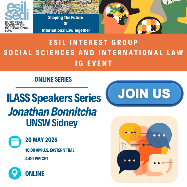 The ESIL Interest group on Social Sciences and International Law are organising with the ASIL International Law and Social Sciences Interest Group of the American Society of International a virtual Social Sciences speakers series.