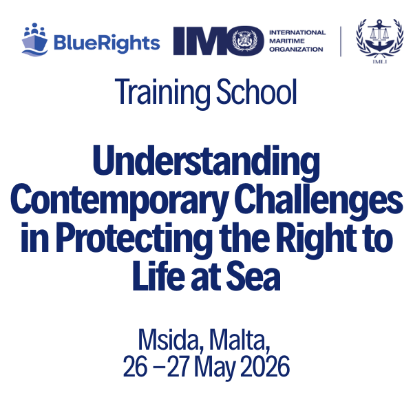 The first BlueRights training school ‘Understanding Contemporary Challenges in Protecting the Right to Life at Sea’, organised together with the IMO International Maritime Law Institute (IMLI), will be held in Msida, Malta from 26-27 May 2026. This in-person training school focuses on early career researchers (PhD candidates and master students) who wish to learn about protecting the right to life at sea.