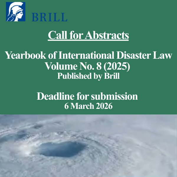 The Yearbook of International Disaster Law (Brill) is inviting submission of abstracts for Issue 8 (2025). The Yearbook includes both a “General” section and a “Thematic” section.